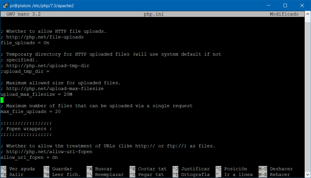 Buscamos la línea con CTRL+W y buscamos «upload«: