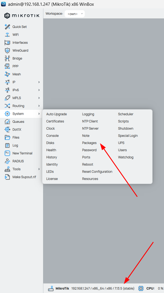 - En Winbox, ve a System > Package.