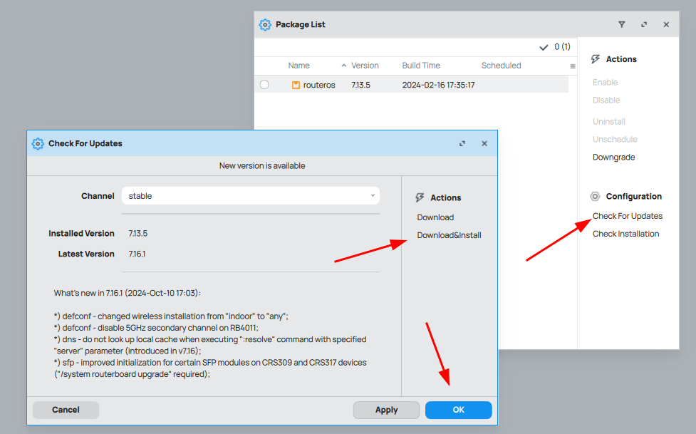 4. Descargar la versión más reciente de RouterOS