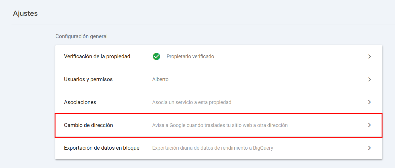 Cambia el dominio en Google Search Console: