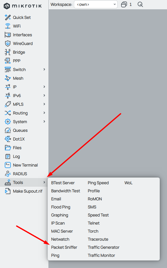 🛠️ Paso 1: Acceder al Sniffer de MikroTik