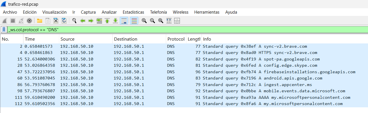 trafico_red.pcap. - Filtra, inspecciona y analiza según tus necesidades:
