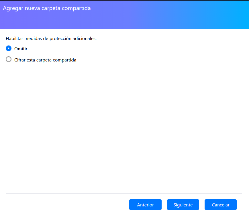 Elegimos si queremos cifrar o no la carpeta compartida: