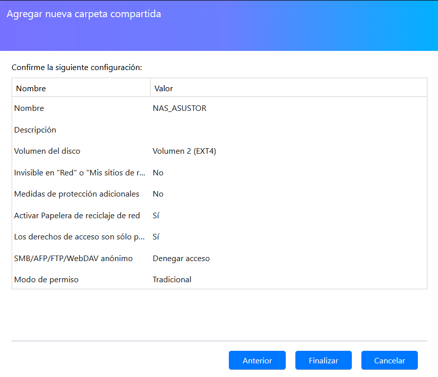 En el próximo post veremos cómo utilizar esta carpeta compartida para almacenar los backups de nuestro Proxmox.