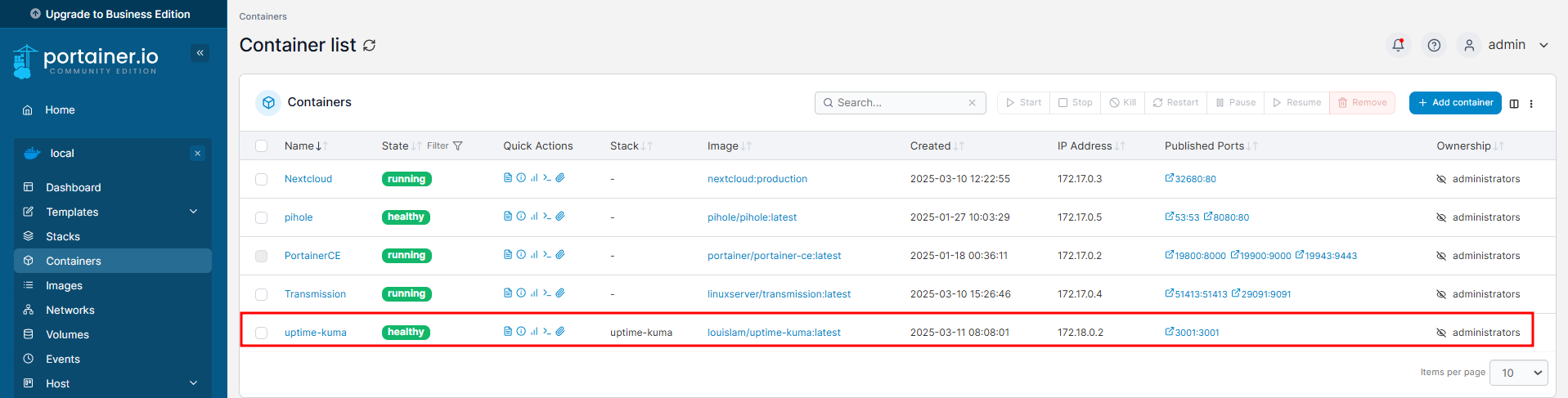 uptimekuma_datacreado previamente. - Asignamos el volumen de Portainer con