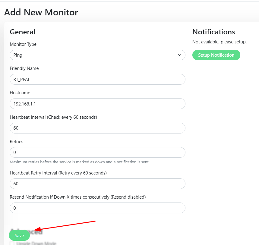 /app/dataesté montado enuptimekuma_data. - Accede a Uptime Kuma en tu navegador: