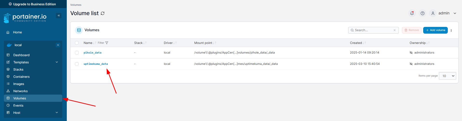 Para garantizar que los datos de Uptime Kuma sean persistentes y no se pierdan tras un reinicio, primero crearemos un volumen en Portainer: