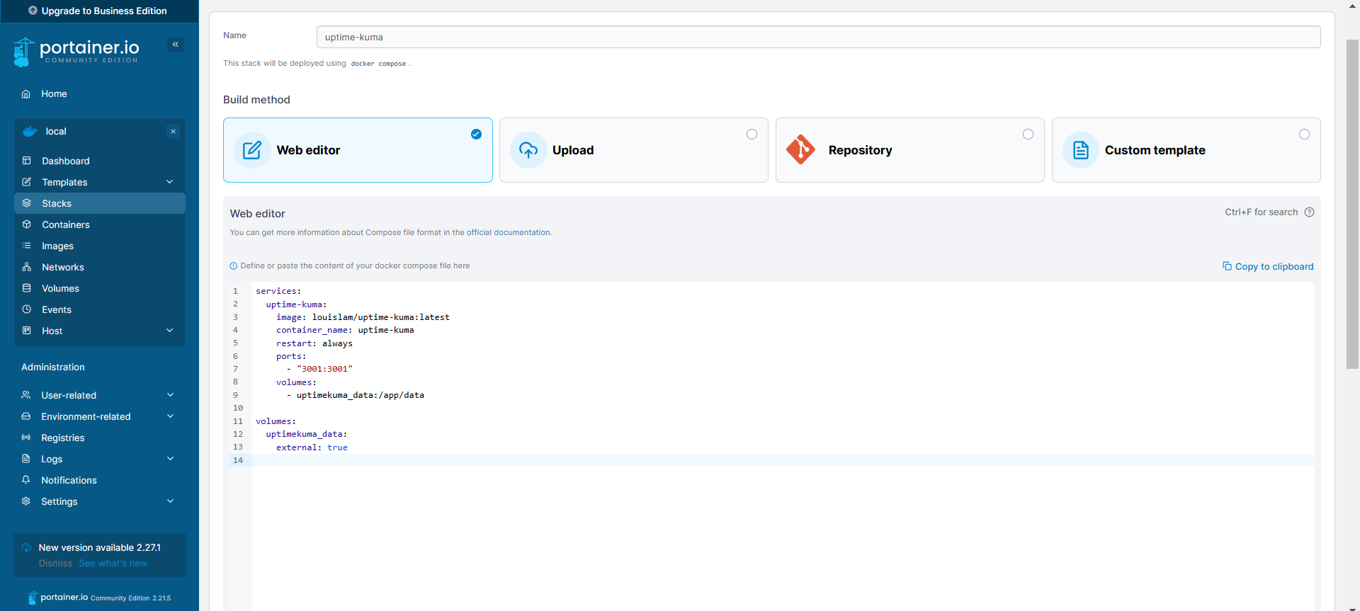 uptime-kuma - En el editor YAML, copia el siguiente contenido: