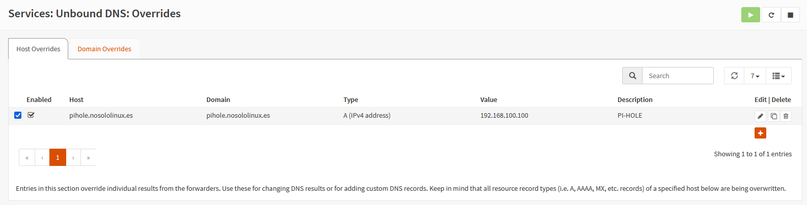 - Tras hacer las configuraciones, vuelve a la página principal de Unbound DNS.