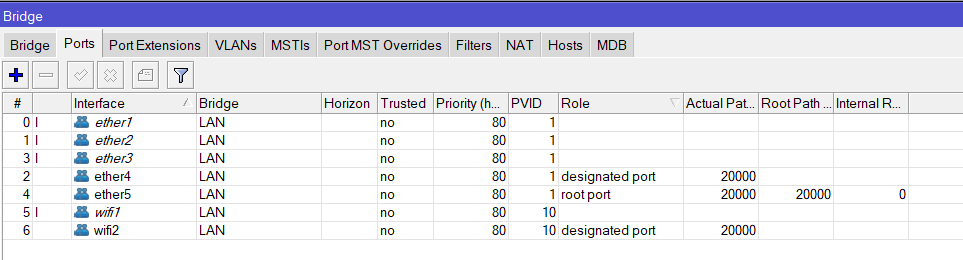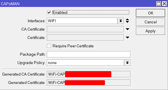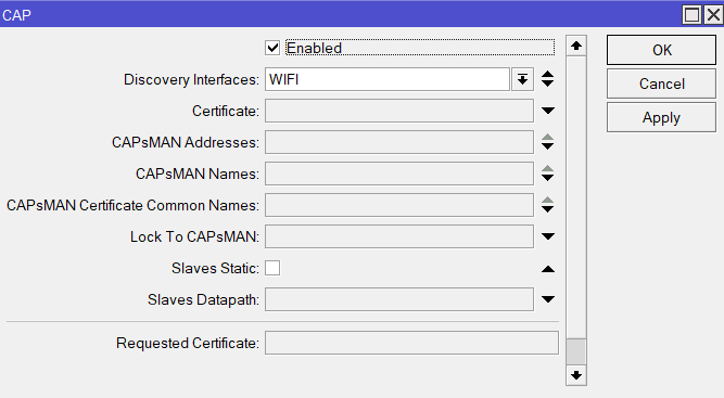 Lo primero que haremos será habilitar el CAPsMAN en la VLAN10 interfaz WIFI: