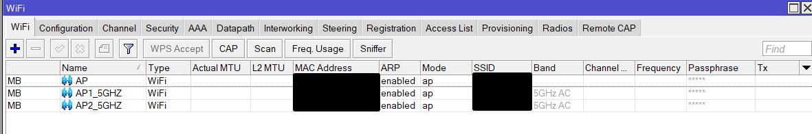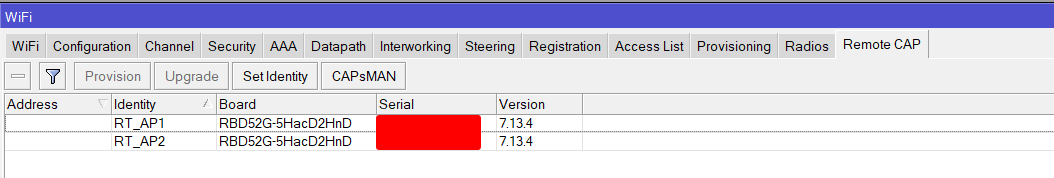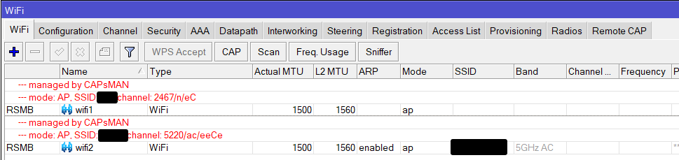 Si nos conectamos a alguno de los APs veremos que la interfaz Wifi está siendo gestionada mediante CAPsMAN y no podremos realizar ninguna modificación desde el AP, todos los cambios deberán realizarse en la controladora: