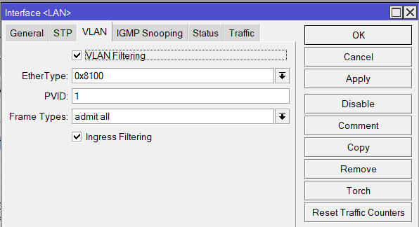 En este caso, el Mikrotik perimetral está en una VM de un Proxmox, por lo que le añadiremos la interfaz VLAN10 directamente desde allí: