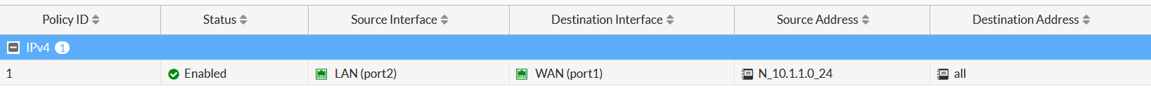 Creamos una regla de Source NAT para presentarnos con la IP WAN del FortiProxy: