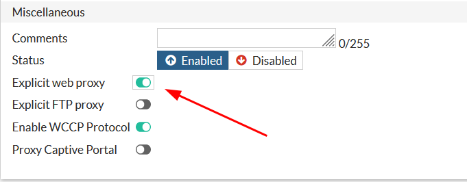- Normalmente se implementa mediante la configuración de políticas en los dispositivos de red, como un router o un switch, para redirigir el tráfico web al FortiProxy.