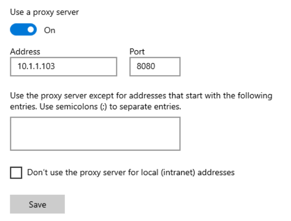 Probamos el proxy explícito en un equipo con Windows10, para ello como comentábamos antes deberemos configurar el proxy:
