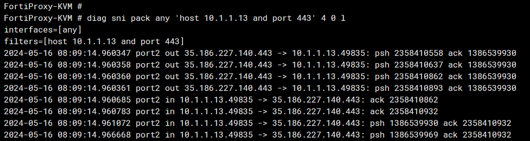 Del mismo modo, observamos que el tráfico estará atravesando el FortiProxy para navegar: