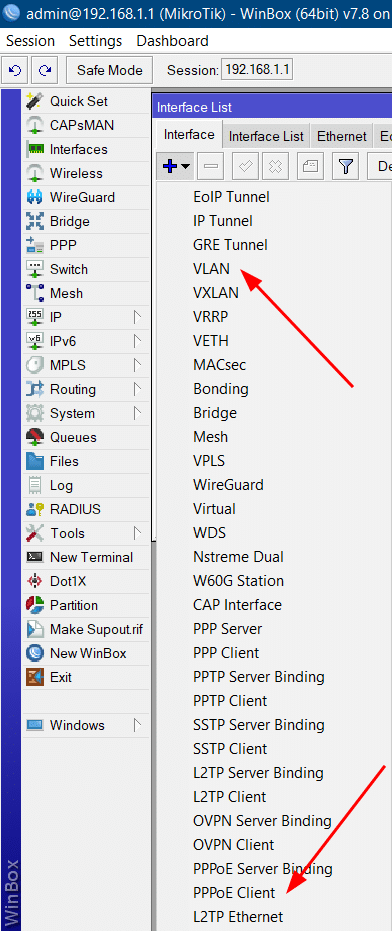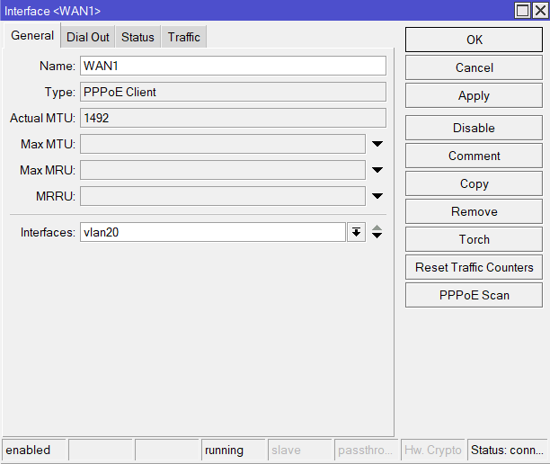 - Crear una interfaz PPPoE client.