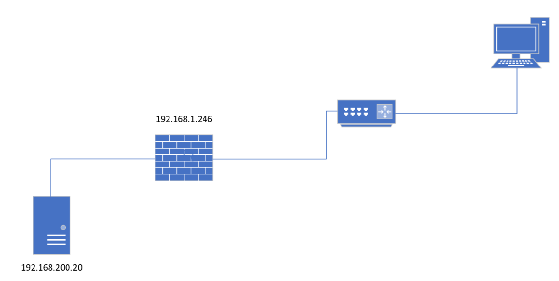 En este ejemplo, queremos acceder desde un PC a la IP 192.168.200.20, sin embargo, desde ese PC solo alcanzamos la IP del firewall 192.168.1.246: