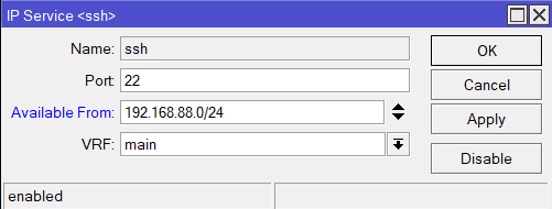 /ip service set ssh address=192.168.88.0/24