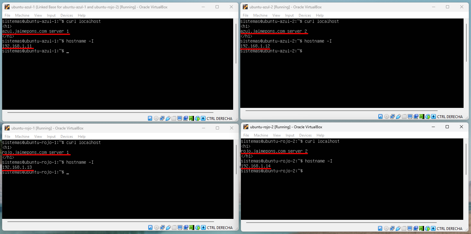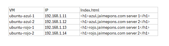 A cada uno de ellos le configuraremos un archivo index.html con un contenido diferente. De esta forma veremos a qué servidor estamos accediendo en todo momento: