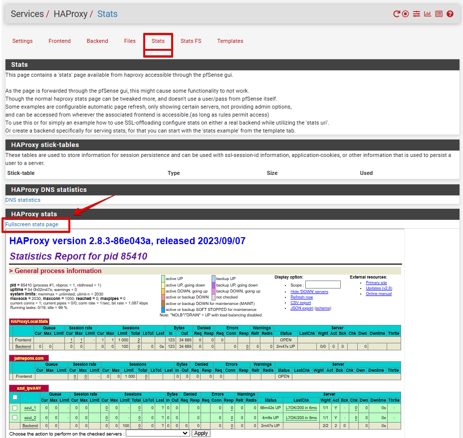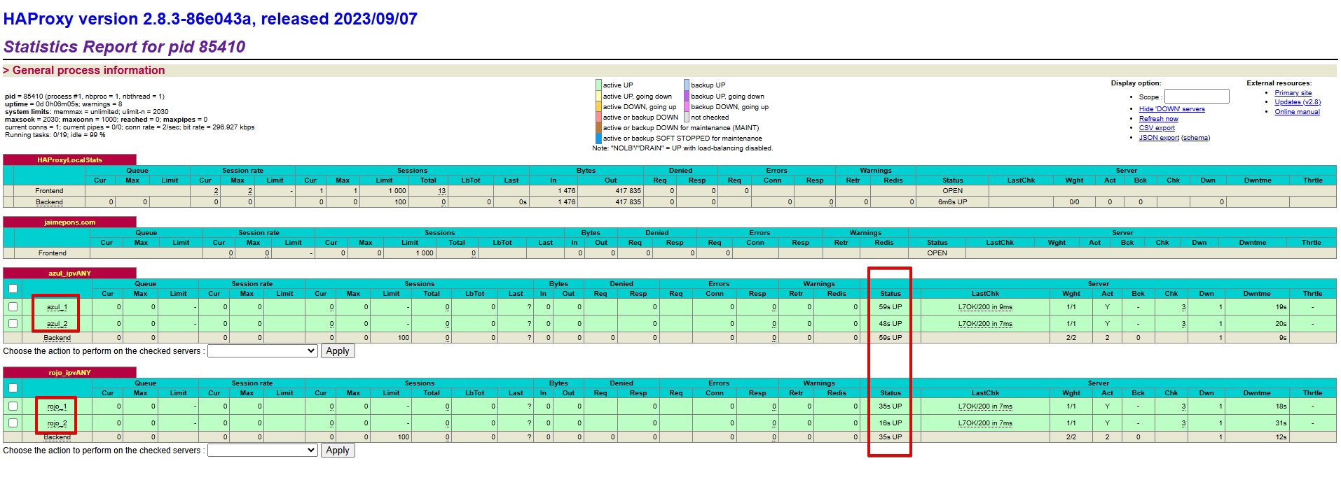 ¿Y qué dicen las estadísticas? Deberían mostrar que todos los servidores están OK. Veámoslo en Stats: