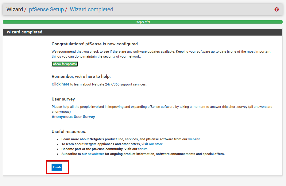 Cuando terminemos el asistente, al pulsar Finish, se volverá a activar el firewall. Debemos repetir el paso de deshabilitar el firewall momentáneamente: