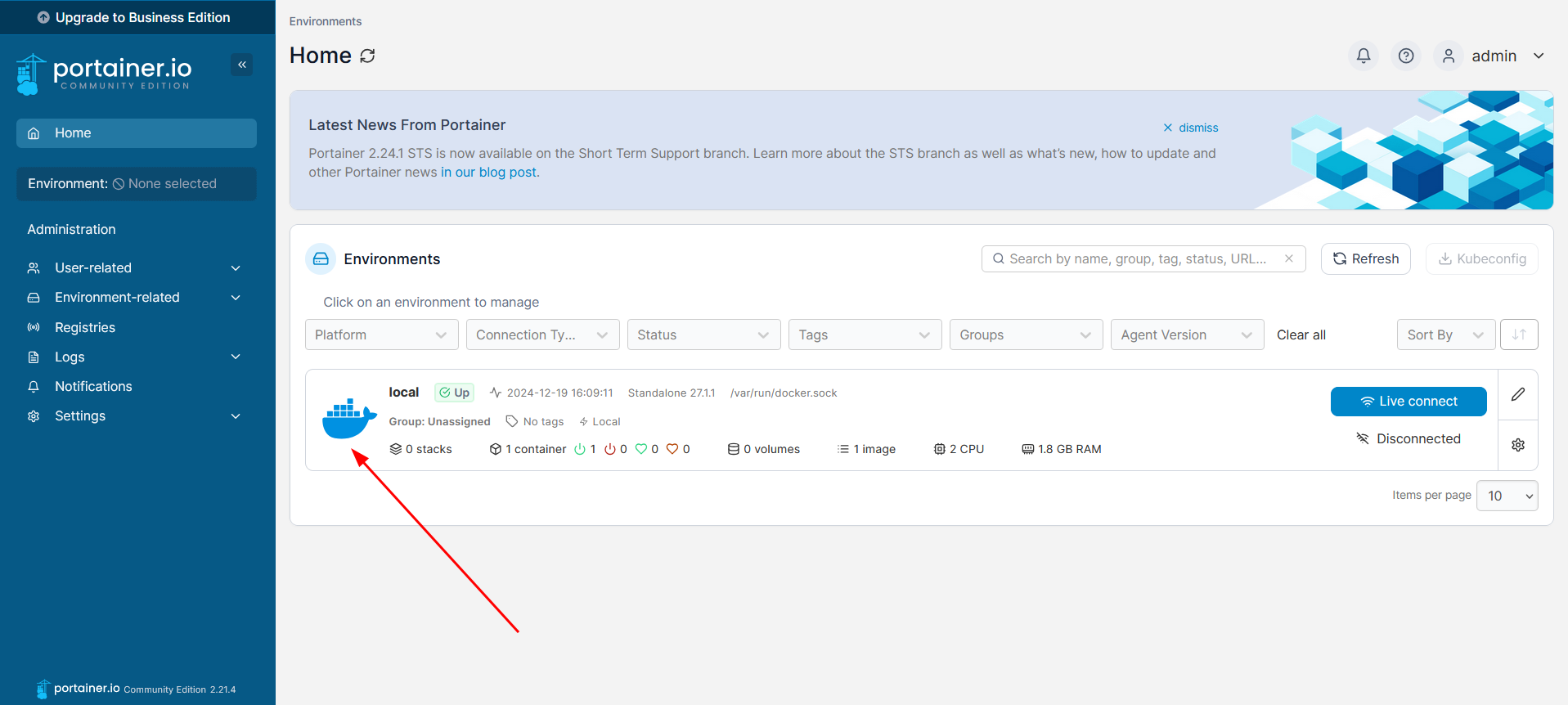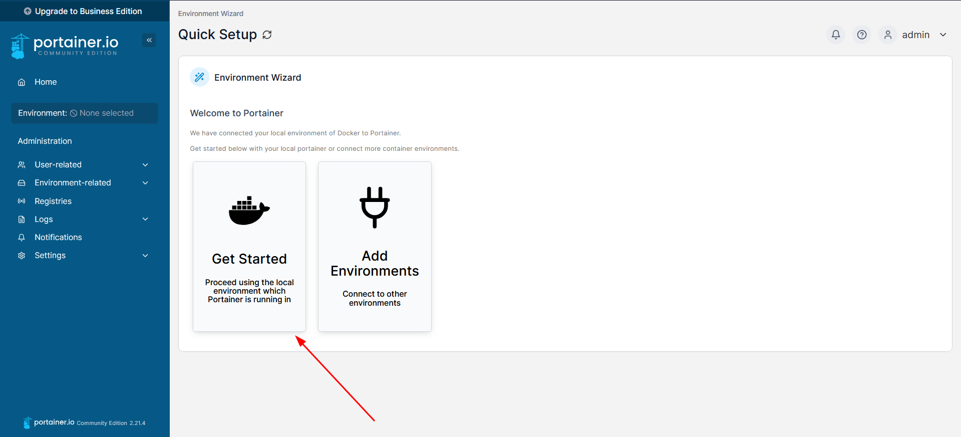 - Selecciona «Local» para gestionar los contenedores Docker directamente en tu NAS.