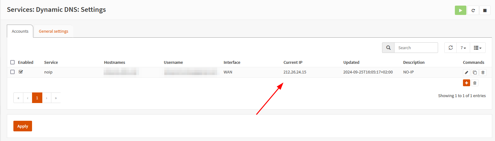 - Si tienes una IP dinámica que cambia con frecuencia, es recomendable configurar una frecuencia de actualización más baja (algunos servicios permiten hacerlo desde OPNsense).