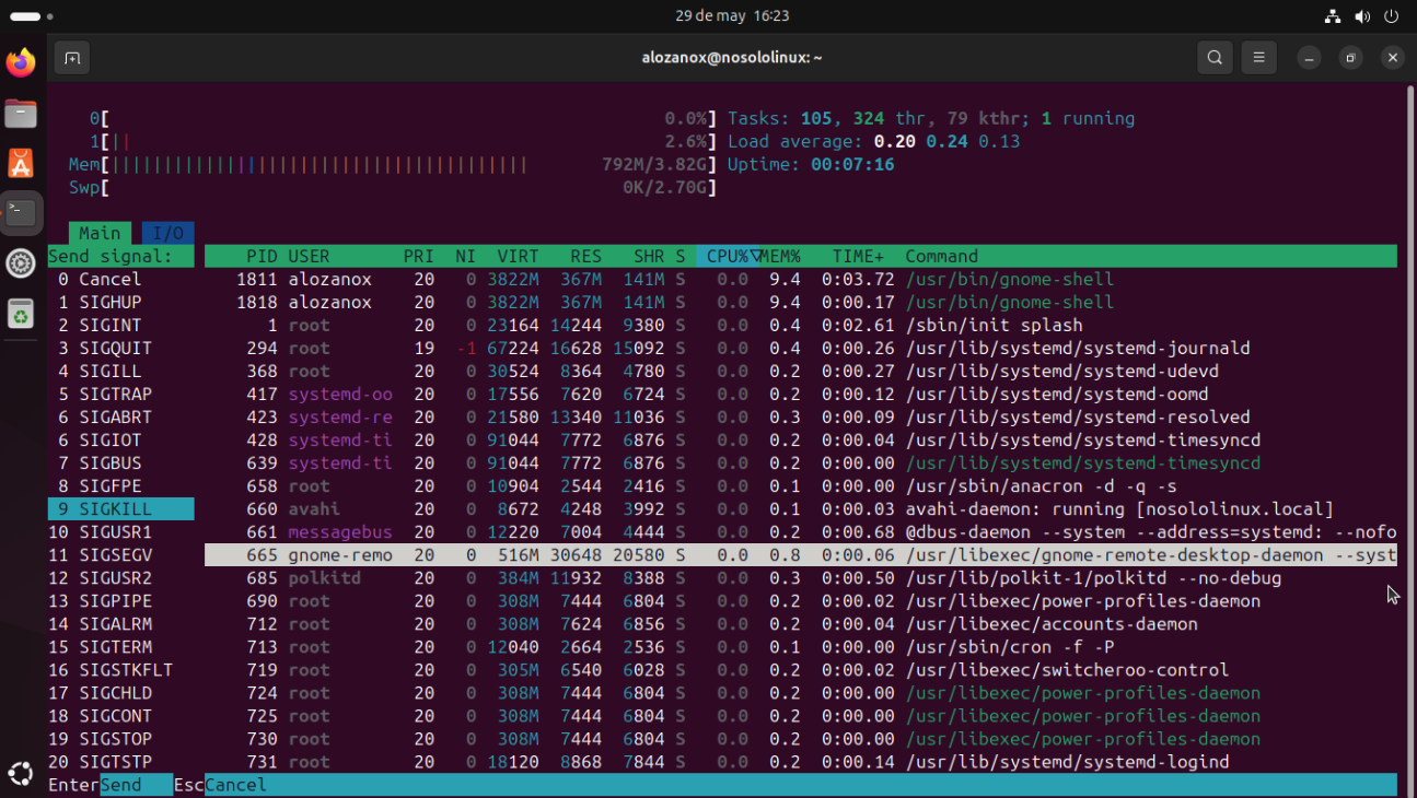 F9 | Matar un proceso (envía señal de terminación) |