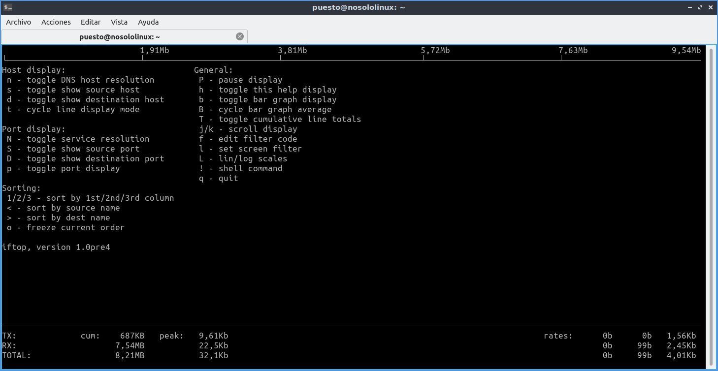 iftop es un programa simple que se ejecuta en el terminal de Linux que nos permitirá visualizar las conexiones activas de nuestra máquina en tiempo real.