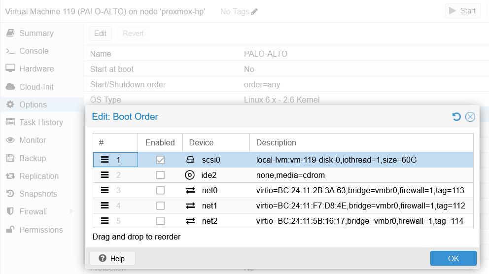Modificamos el boot order para asignar el nuevo disco en primera posición: