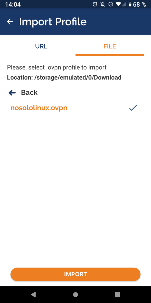 Importamos el fichero del usuario vpn