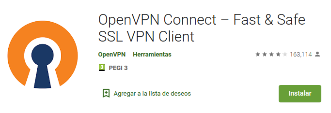 Por último, vamos a descargarnos la app para android de OpenVPN para comprobar la conectividad, aunque podéis utilizar el cliente que queráis, ya sea para Linux, Windows, IOS…os dejo el enlace a la página web oficial. para que le echéis un vistazo.