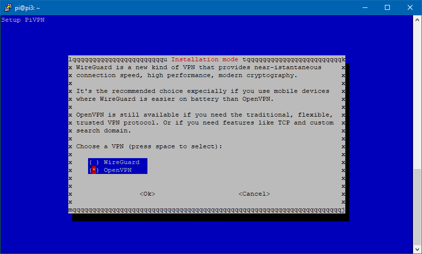 curl -L https://install.pivpn.io | bash