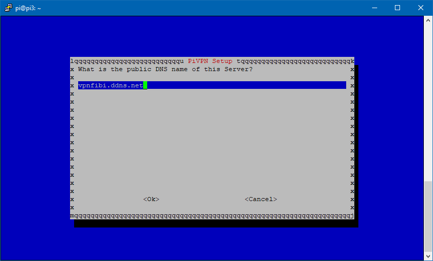 Especifcaremos el dominio con el que se conectarán los clientes. En nuestro caso haremos uso del servicio gratuito NO-IP con un dominio que hemos creado vpnfibi.ddns.net