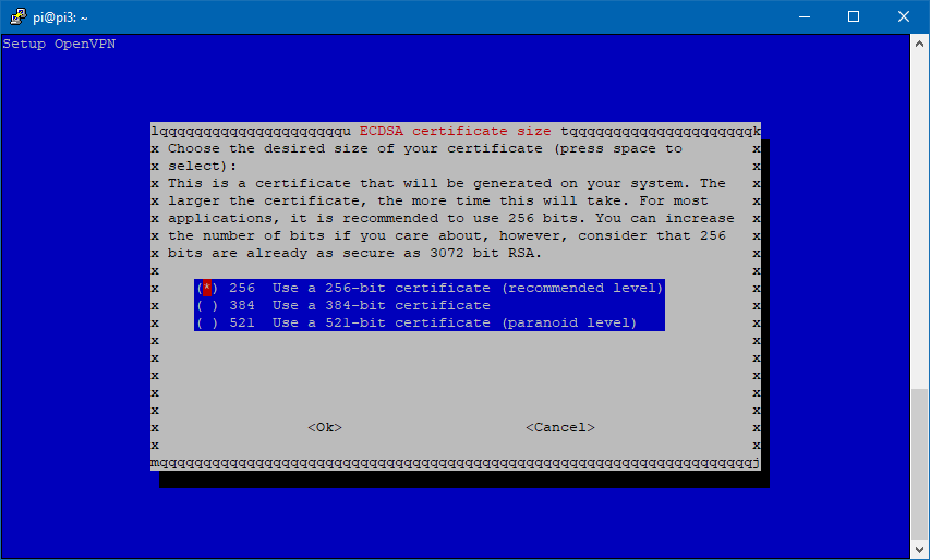 Especificamos el tamaño del certificado. En este caso el valor recomendado 256.