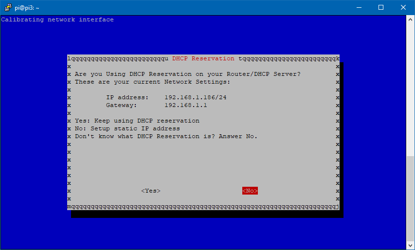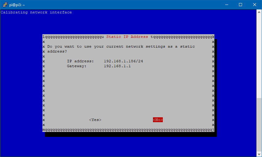 Si ya tenéis una IP estática configurada en la Raspberry podéis hacer click en «Yes». De lo contrario, pulsamos en «No»