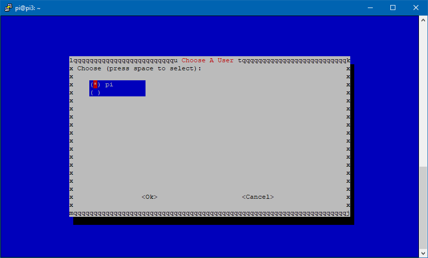 Elegimos el usuario pi u otro que tengamos configurado en la Raspberry