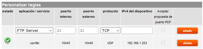 El siguiente paso será abrir el puerto que definimos en la configuración de nuestro servidor VPN. En este caso lo abriremos en un router Livebox de Orange: