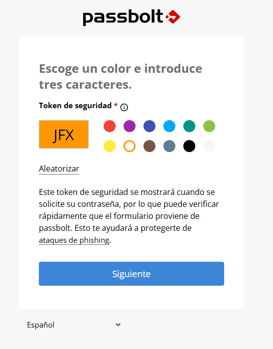 En el siguiente paso, nos pedirá escoger un color y introducir tres caracteres. Esto sirve para que cuando nos solicite la contraseña de acceso, venga del passbolt y no sea una posible ataque de Phishing.
