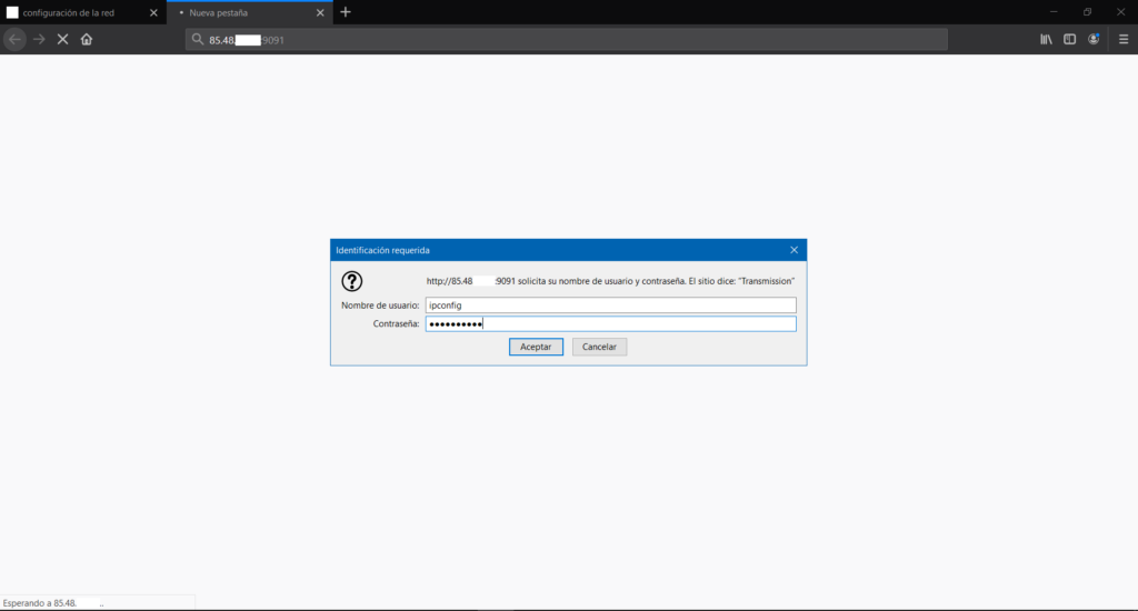 Para ello, abrimos el navegador e introducimos nuestra IP pública que nos ha asignado nuestro ISP más el puerto que hemos configurado como puerto externo en la regla NAT, en este caso 9091 aunque podría ser cualquier otro que queramos.