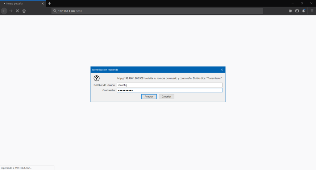 Si todo ha ido bien, nos solicitará de nuevo el usuario y contraseña que definimos en el fichero de configuración: