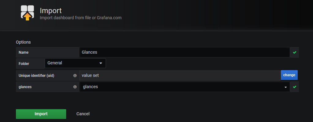 Importamos el fichero para el dashboard de Glances: