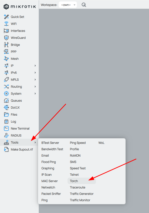 Puedes usar Torch desde Winbox, WebFig o línea de comandos (CLI). Te muestro cómo en cada caso.