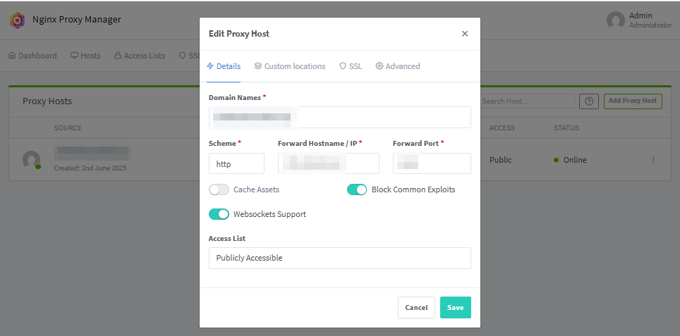 Nginx Proxy Manager integra Let’s Encrypt, permitiéndote emitir y renovar certificados SSL automáticamente, sin mover un dedo. Esto garantiza que todo el tráfico esté cifrado y cumpla con los estándares de seguridad actuales.