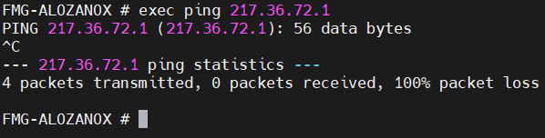 Comprobamos que no tenemos ping desde el FMG al FGT:
