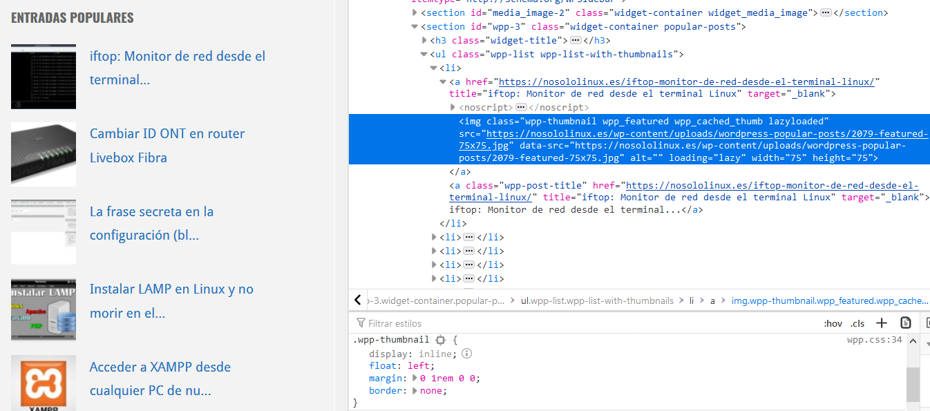 El tema, en este caso vamos hacer algo muy simple pero que creo que queda bastante bien que es simplemente redondear las imágenes de las entradas mas frecuentes del widget lateral derecho. (Ya veremos luego si mantenemos la modificación o no).
