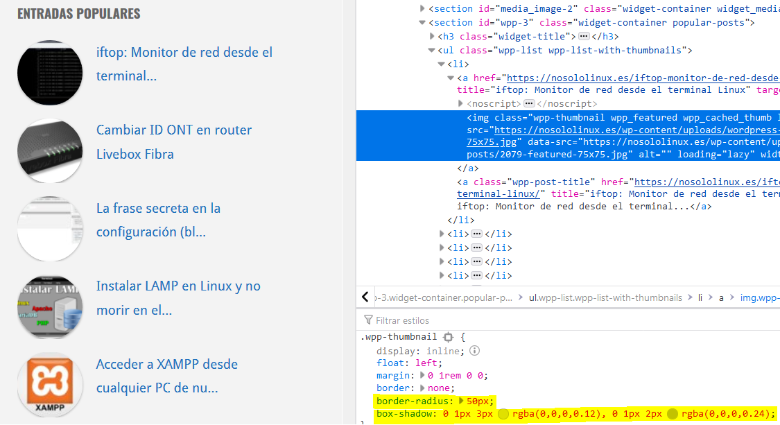 Como véis, quiero redondear las imágenes que aparecen en la parte derecha de la web.