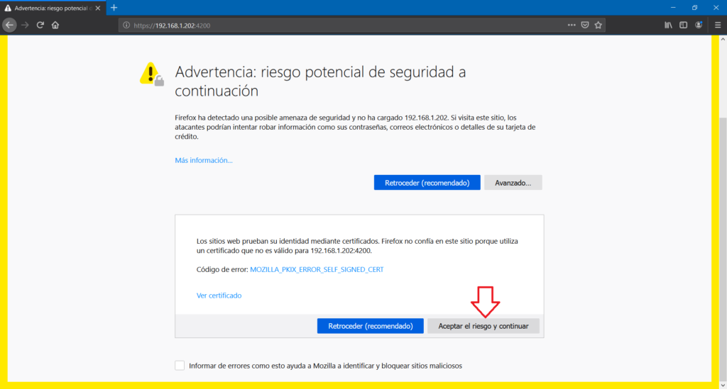 Y por último, simplemente abrimos un navegador e introducimos la dirección del equipo más el puerto asignado: