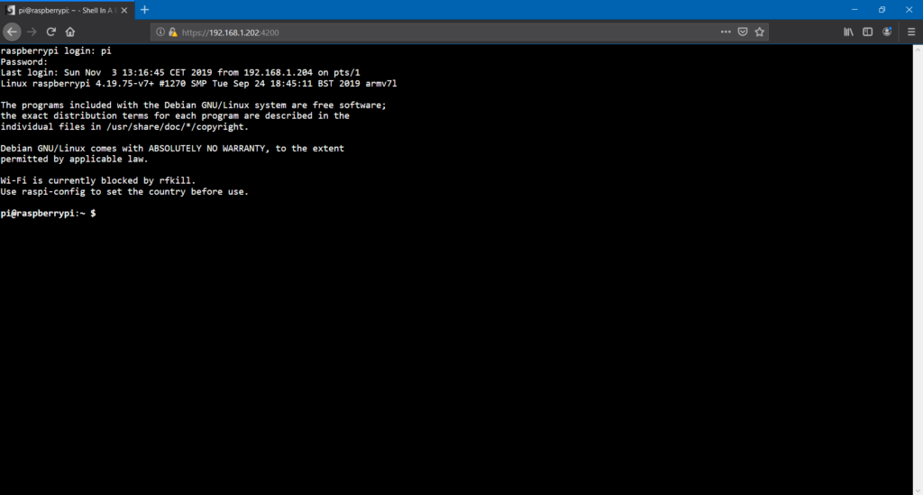 root@raspberrypi:/home/pi# sudo /etc/init.d/shellinabox restart